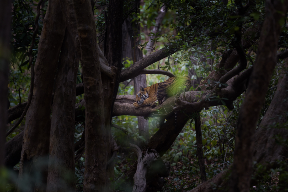 The first time I truly felt this was in Ranthambore National Park in 2016 on a full-day safari. Only three jeeps were waiting near a nallah where a tigress named Noor was resting with her two cubs. After about forty-five minutes, our guide grew impatient. He suggested we drive in to “check” on her. We went off track, through trees and down a rocky bank into the nallah.